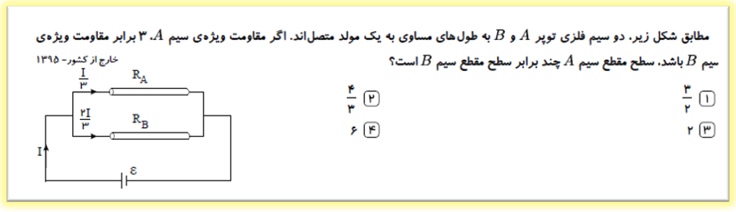 1-مساحت سطح مقطع A (ضخامت سیم): هرچه مساحت سطح مقطع رسانا بیشتر باشد ، مقاومت کمتر می شود.