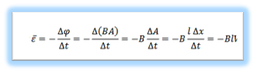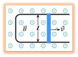 اگر مطابق شکل، سیم راستی به طول 𝑙را با سرعت𝑉 در میدان مغناطیسی 𝐵به حرکت درآوریم ،در این صورت نیروی محرکه القایی دو سر سیم از رابطه ی زیر محاسبه می شود.