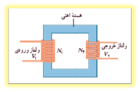 همانطور که میدانیم در انتقال توان الکتریکی از توان الکتریکی 𝐴𝐶استفاده می شود، یکی از دلایل مهم این موضوع این است که افزایش و کاهش ولتاژ 𝐴𝐶بسیار ساده تر از ولتاژ 𝐷𝐶است. این تغییر ولتاژها توسط مبدل انجام می شود. شکل مقابل یک مبدل شامل دو پیچه با تعداد دورهای متفاوت را نشان می دهدکه دور یک هسته آهنی پیچیده شده است.