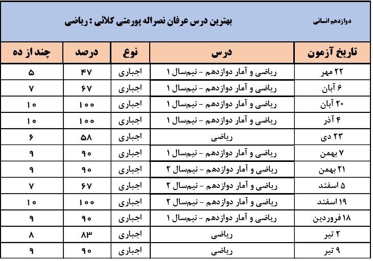 - کدام درسها نقطه قوت شماست؟ روش مطالعه این درسها چگونه است؟ در مدرسه یا آزمونها چه نمرهای برای این درسها کسب میکنید؟