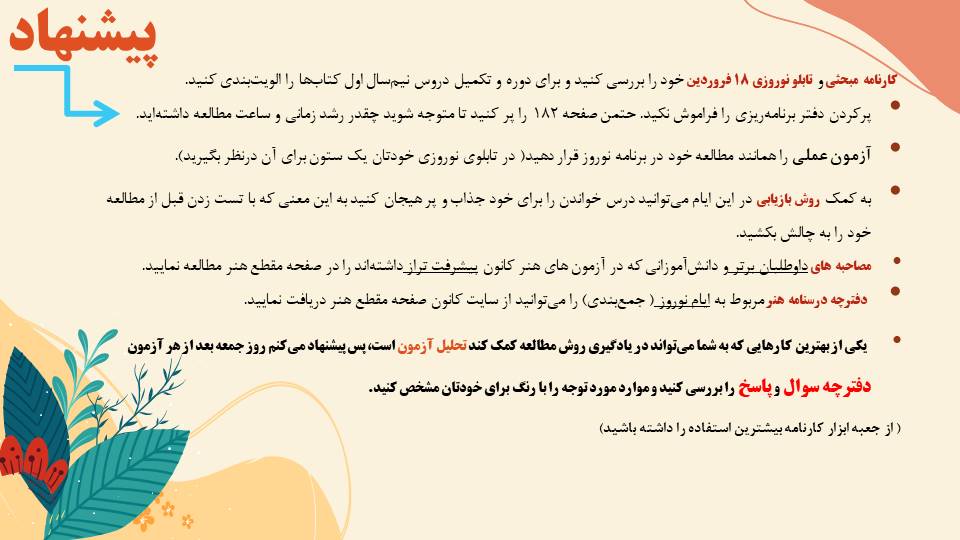 سلامدوستان عزیز فایل ضمیمه پی دی اف منطق آزمون 18 فروردین ماه هنر است که میتوانید آن را برای برنامهریزی شخصی دقیقتر مشاهده نمایید.