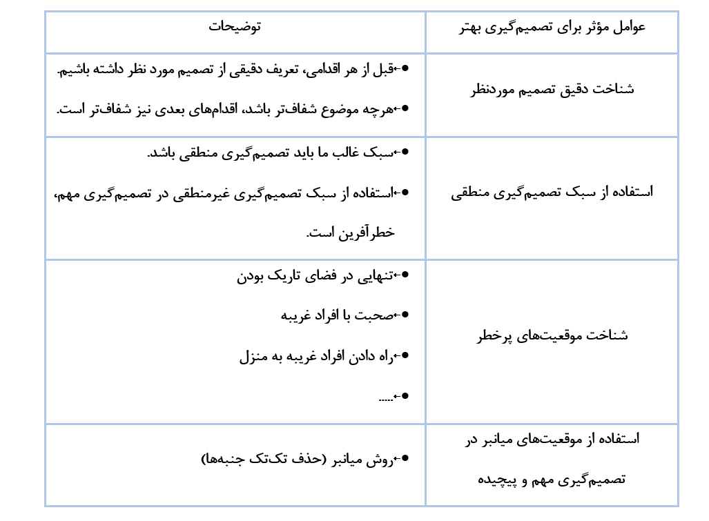 مطالعه و بررسی مباحثی از درس تفکر (2) تصمیمگیری