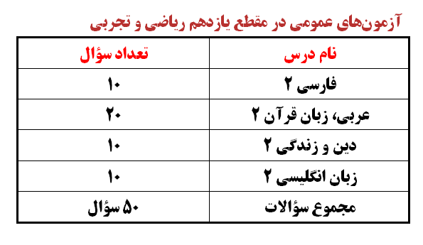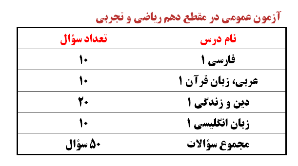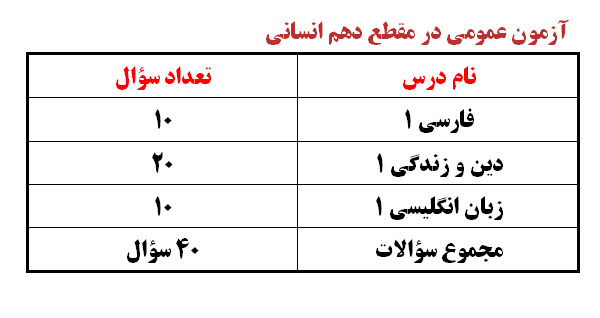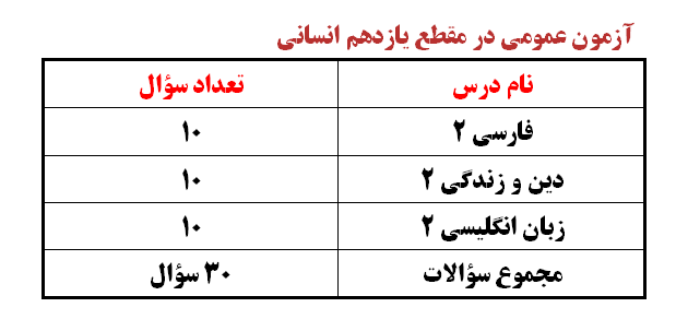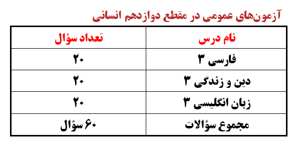 ویژگیهای آزمون عمومی 17 فروردین- مقاطع دهم، یازدهم و دوازدهم