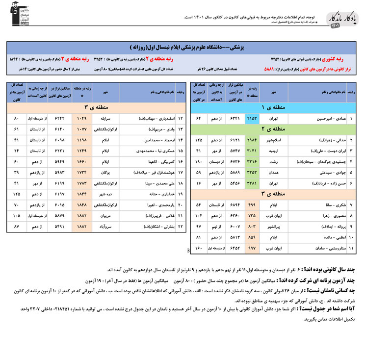 یادگار ماندگار : قبولی های کانونی دانشگاه علوم پزشکی ایلام در همه رشته ها در سال 1401 را در ادامه مشاهده کنید.فایل با کیفیت قبولی های سال 1401 را در قسمت فایل های ضمیمه دانلود کنید.