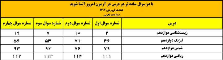 در کارنامهی امسال در هر درس دو سؤال ساده تر را مشخص کردهایم.