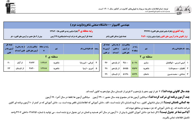 یادگار ماندگار : قبولی های کانونی دانشگاه صنعتي شاهرود در همه رشته ها در سال 1401 را در ادامه مشاهده کنید.فایل با کیفیت قبولی های سال 1401 را در قسمت فایل های ضمیمه دانلود کنید.