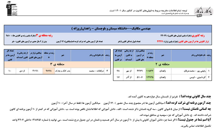 یادگار ماندگار : قبولی های کانونی دانشگاه سيستان و بلوچستان زاهدان در همه رشته ها در سال 1401 را در ادامه مشاهده کنید.فایل با کیفیت قبولی های سال 1401 را در قسمت فایل های ضمیمه دانلود کنید.