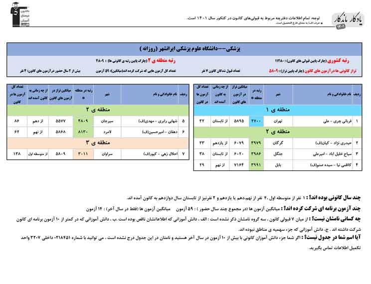 یادگار ماندگار : قبولی های کانونی دانشگاه علوم پزشکي ايرانشهر در همه رشته ها در سال 1401 را در ادامه مشاهده کنید.فایل با کیفیت قبولی های سال 1401 را در قسمت فایل های ضمیمه دانلود کنید.