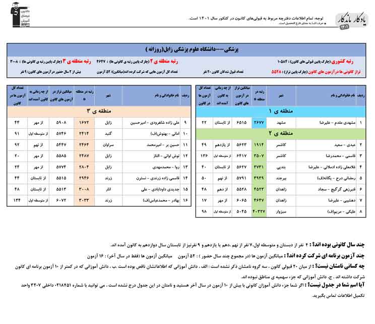 یادگار ماندگار : قبولی های کانونی دانشگاه علوم پزشکی زابل در همه رشته ها در سال 1401 را در ادامه مشاهده کنید.فایل با کیفیت قبولی های سال 1401 را در قسمت فایل های ضمیمه دانلود کنید.