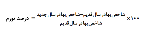 در صورت افزایش این شاخص تورم مشاهده میشود. تورم تغییر متوسط قیمت کالاها و خدمات در طول زمان است. برای محاسبه درصد تورم داریم: