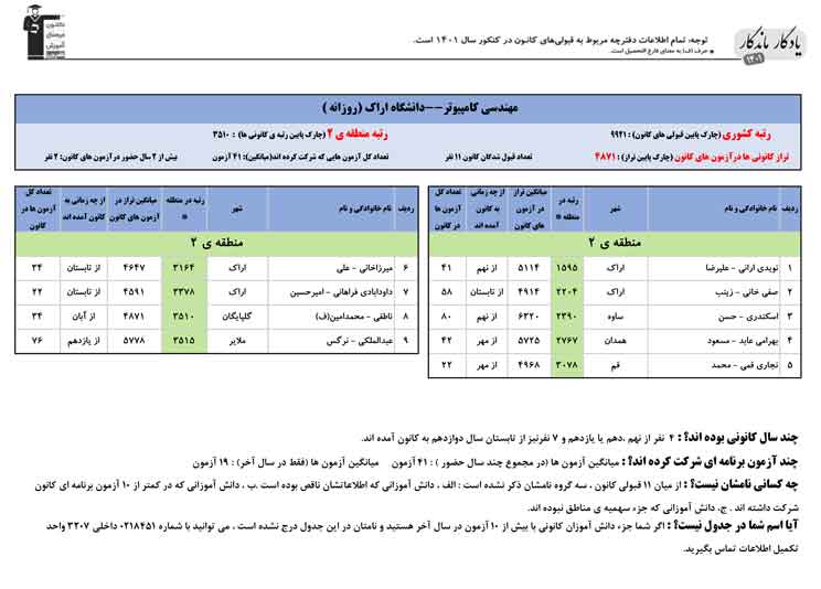 یادگار ماندگار : قبولی های کانونی دانشگاه اراک در همه رشته ها در سال 1401 را در ادامه مشاهده کنید.فایل با کیفیت قبولی های سال 1401 را در قسمت فایل های ضمیمه دانلود کنید.