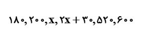 5- درآمد افراد یک جامعه بهترتیب بهصورت زیر میباشد، اگر خط فقر به روش نصف میانه و نصف میانگین با هم برابر باشند، مقدار X کدام است؟