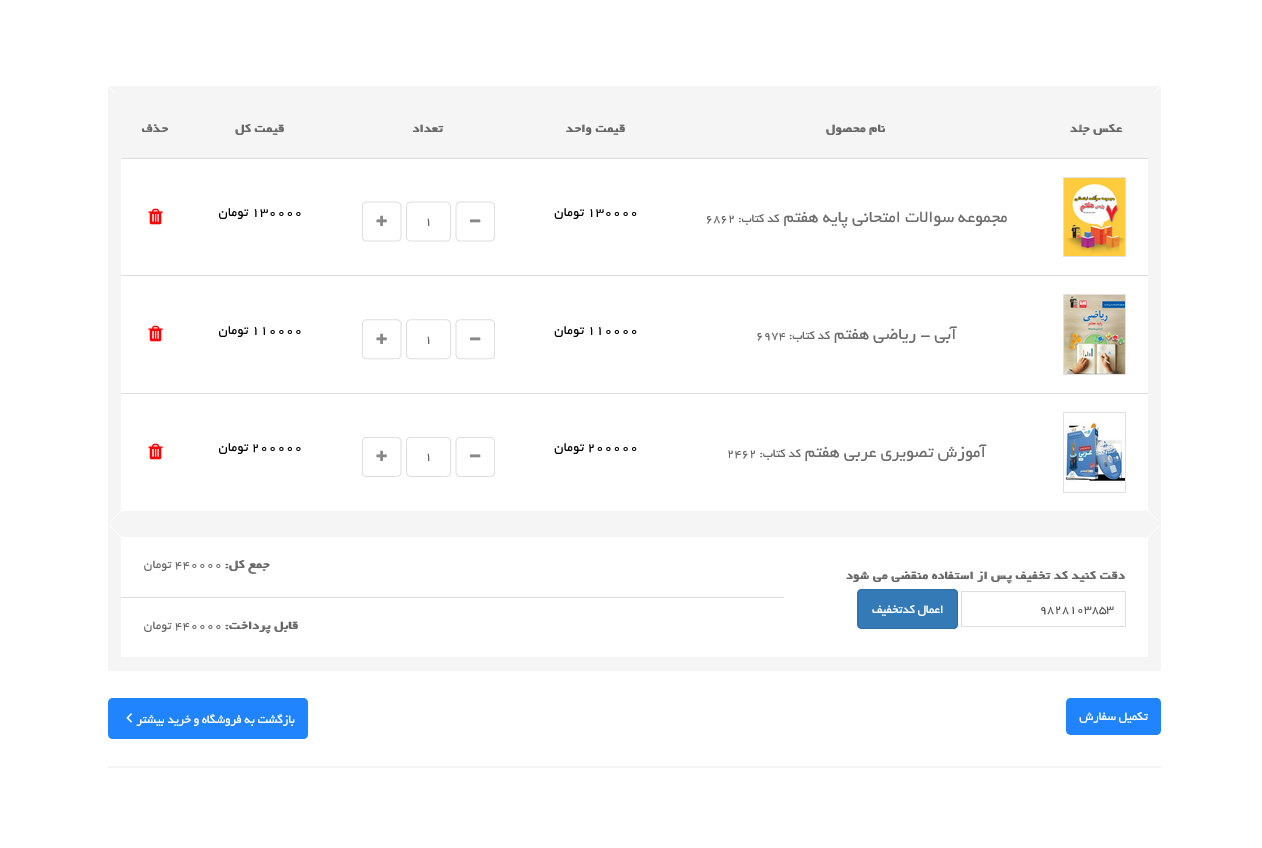 (برای دانش آموزان بورسیه گزینه ارسال رایگان از کانون بوک را انتخاب کنید )