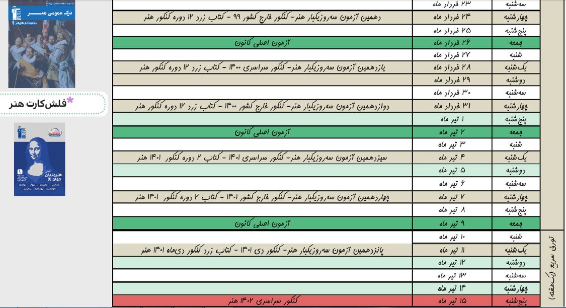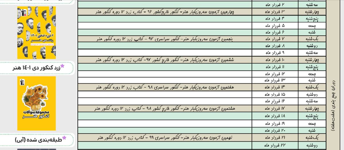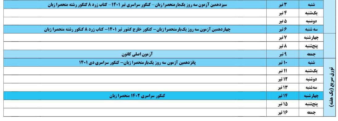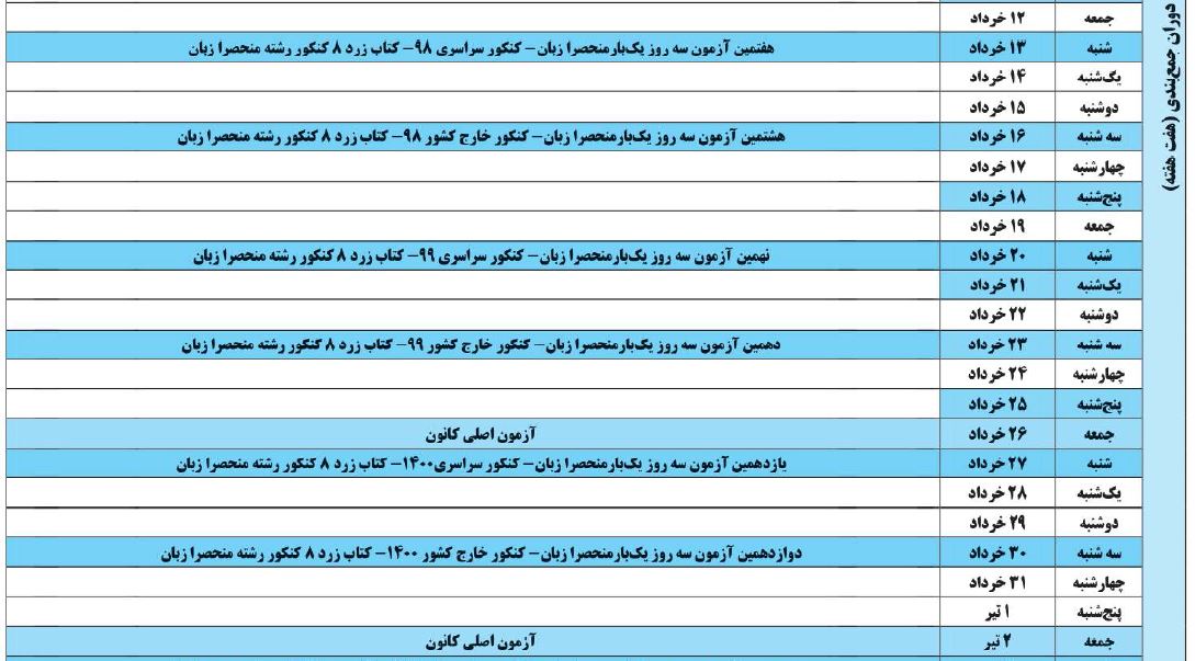 هفته سوم: 10 تیرماه تا کنکور سراسری