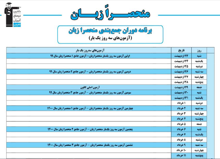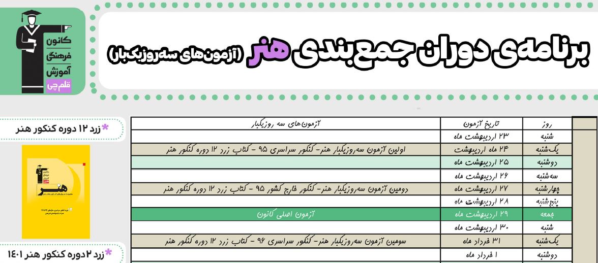 برنامه ی دوران جمع بندی ( آزمون های سه روز یک بار)