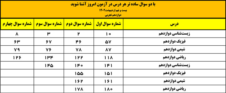 دو سوال ساده‌ی هر درس آزمون29اردیبهشت کدام بودند؟(همه گروه ها)