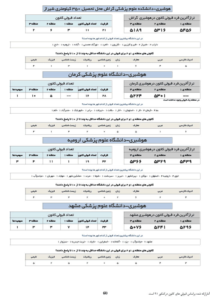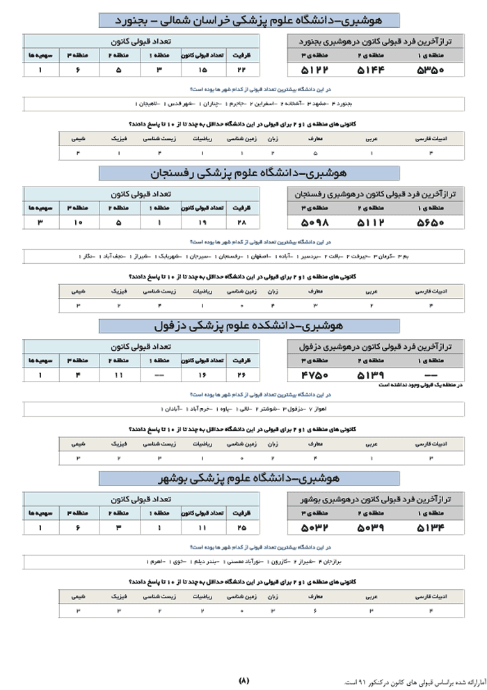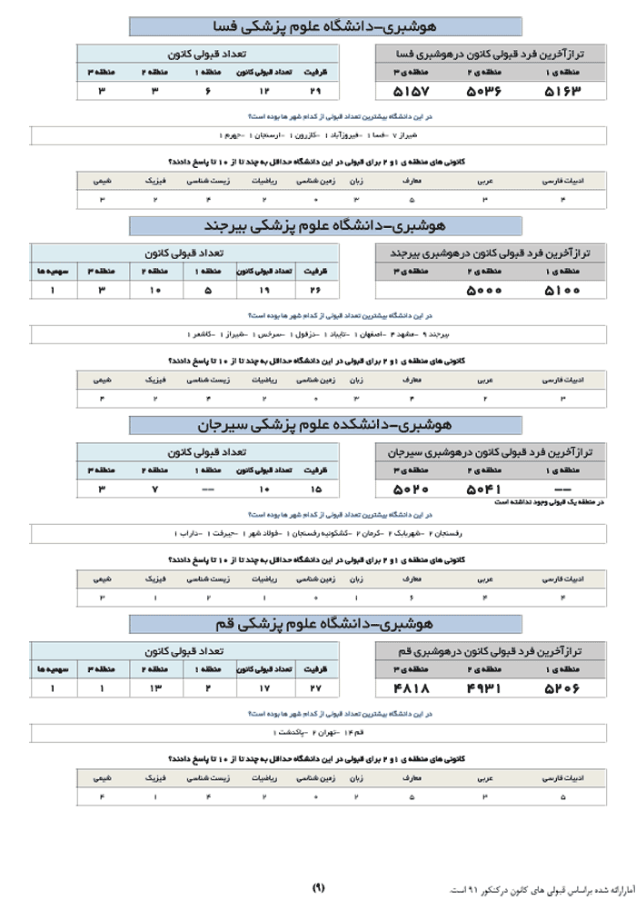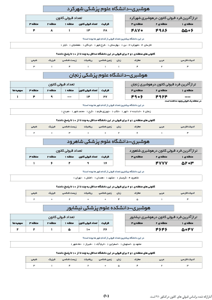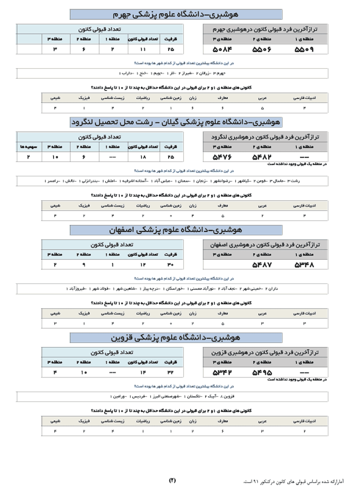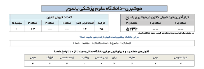 اطلاعات دیگری که در این جدول وجود دارد و برای شما جالب خواهد بود ، این است که از کانون های هر شهر چه تعدادی به هر دانشگاه رفته اند. این اطلاعات در تشخیص گرایش دانش آموزان و اقبال عمومی در انتخاب رشته به شما کمک خواهد کرد.