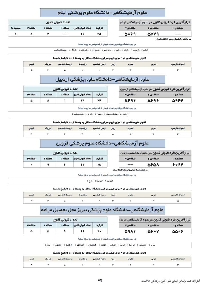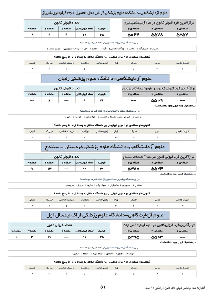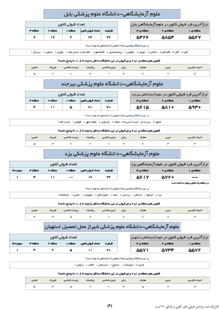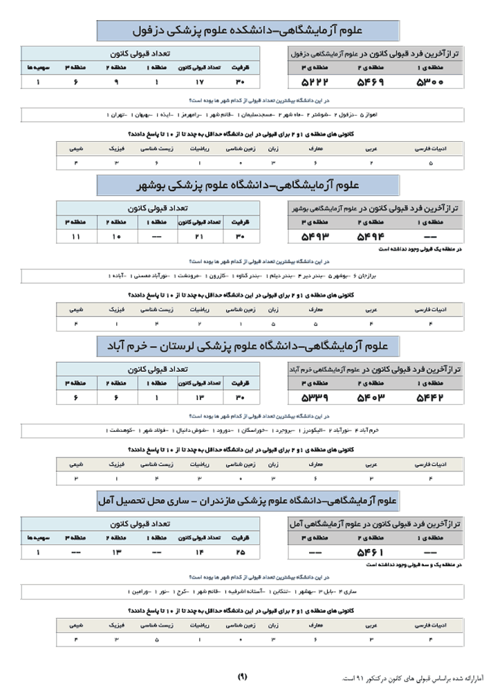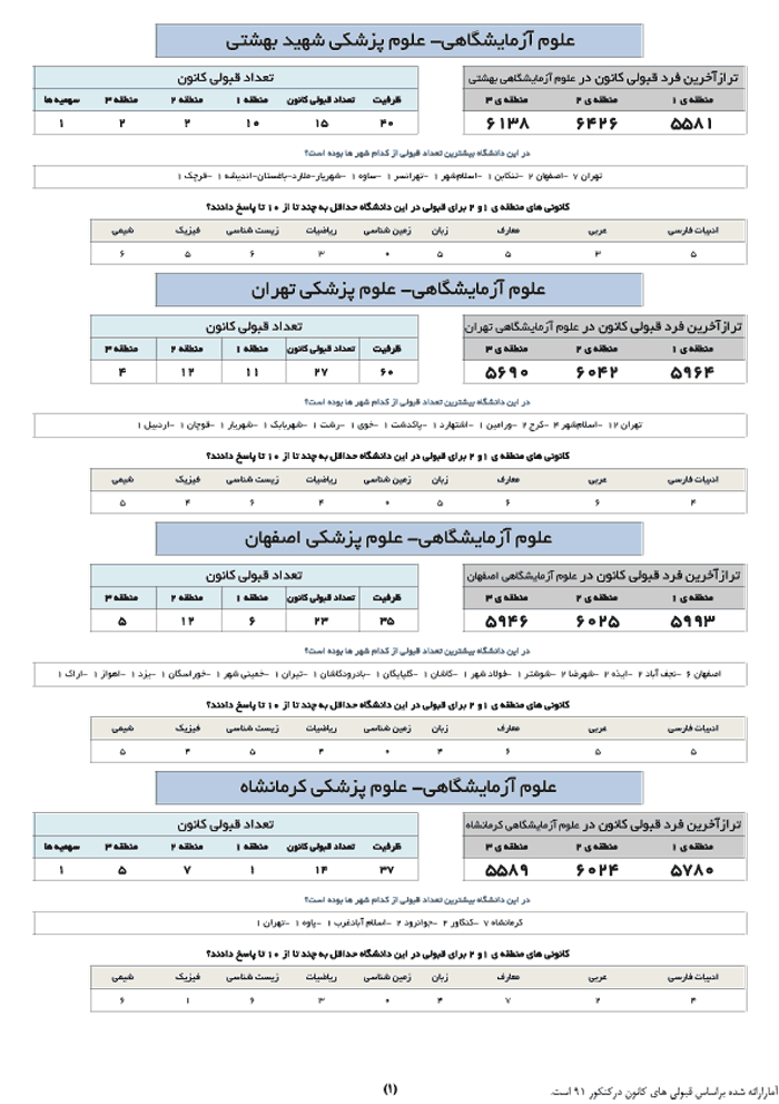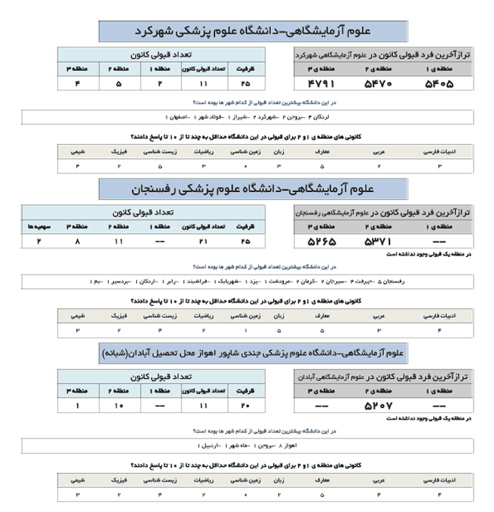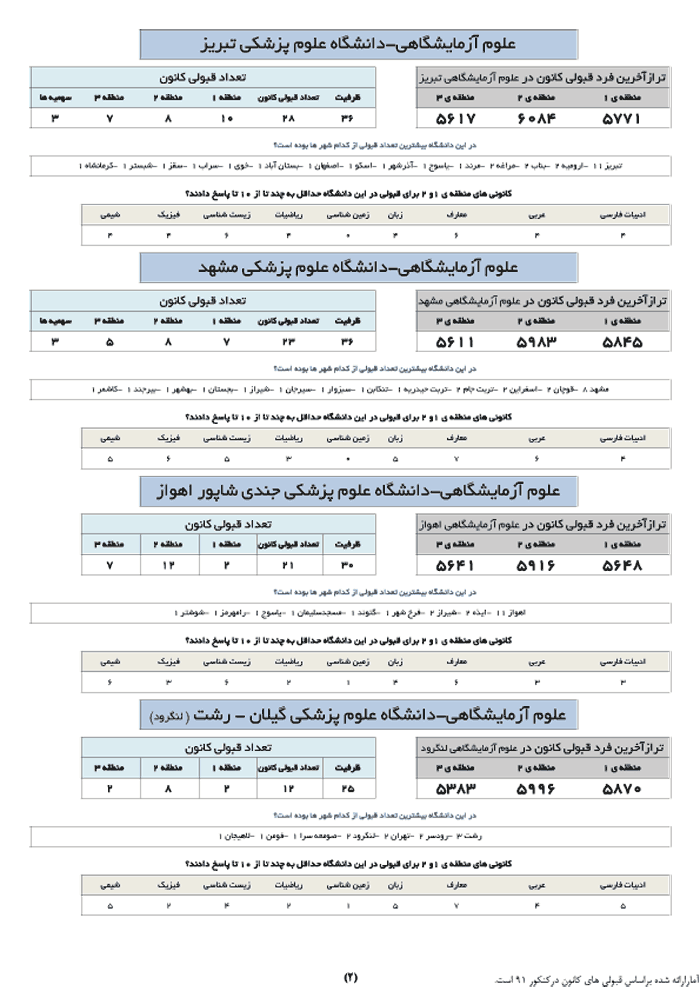 در جدول زیر تراز آخرین فرد قبول شده کانونی در رشته علوم آزمایشگاهی در دانشگاه های مختلف ارائه شده است.