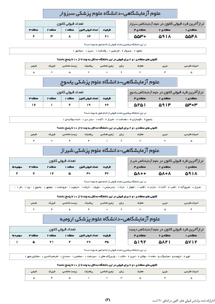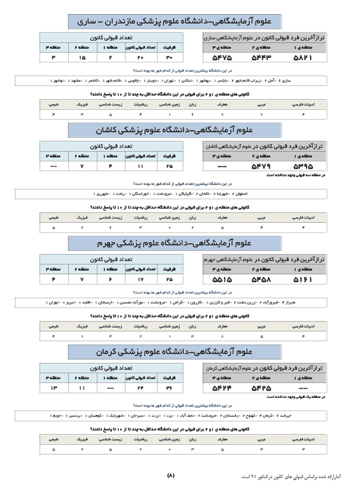 اطلاعات دیگری که در این جدول وجود دارد و برای شما جالب خواهد بود ، این است که از کانون های هر شهر چه تعدادی به هر دانشگاه رفته اند. این اطلاعات در تشخیص گرایش دانش آموزان و اقبال عمومی در انتخاب رشته به شما کمک خواهد کرد.