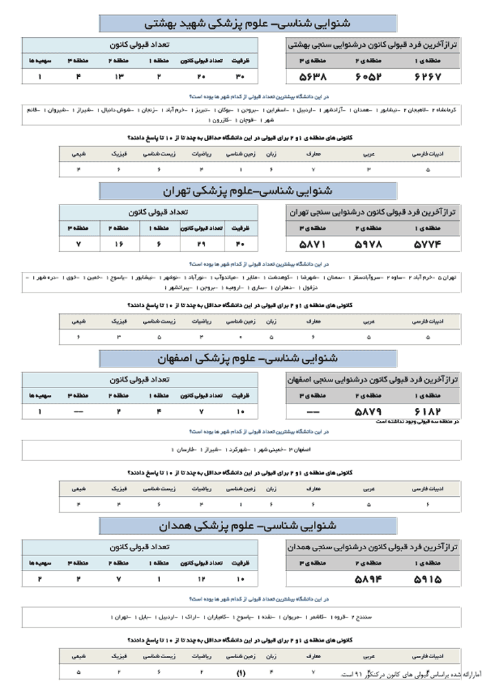 اطلاعات دیگری که در این جدول وجود دارد و برای شما جالب خواهد بود ، این است که از کانون های هر شهر چه تعدادی به هر دانشگاه رفته اند. این اطلاعات در تشخیص گرایش دانش آموزان و اقبال عمومی در انتخاب رشته به شما کمک خواهد کرد.