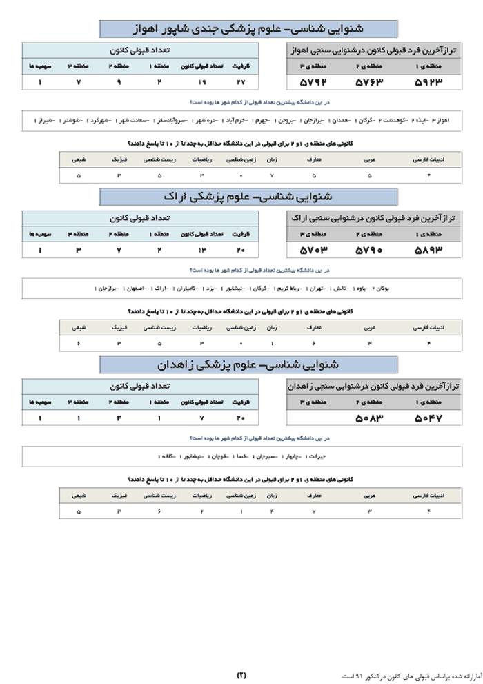 در جدول زیر تراز آخرین فرد قبول شده کانونی در رشته شنوایی سنجی در دانشگاه های مختلف ارائه شده است.