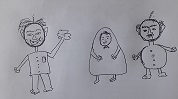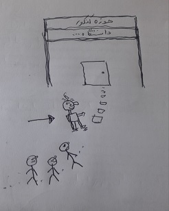 در نقاشی زیر خوشحالی اصغر و دوستانش را که به موقع وارد حوزه کنکور می شوند مشاهده می کنید.