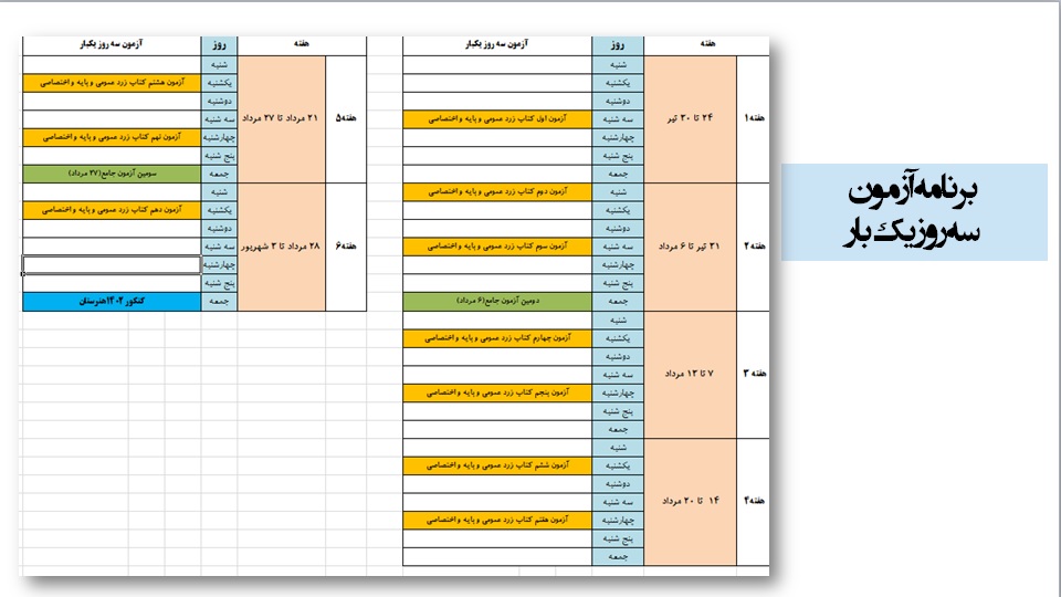 بهترین منبع برای دوران جمعبندی و اجرای روش سه روز یکبار هنرستان، کتابهای زرد میباشند.