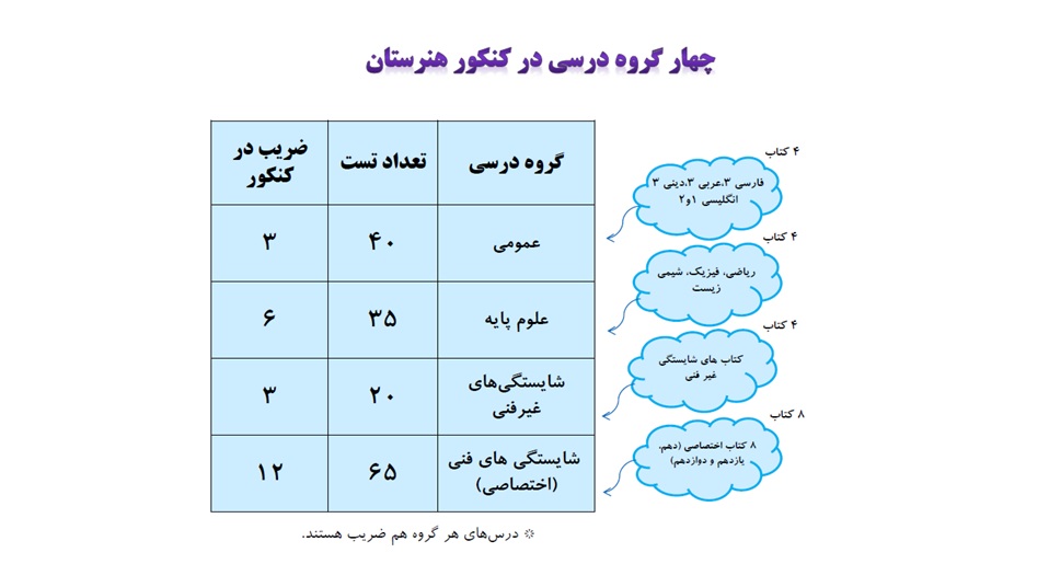 در هر رشتهای که باشید، باید به سوالات چهار گروه درسی مطابق با جدول زیر پاسخ دهید.