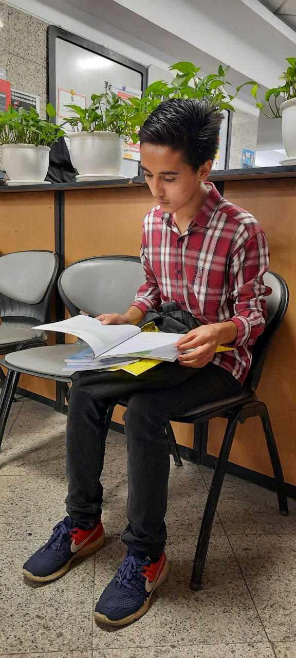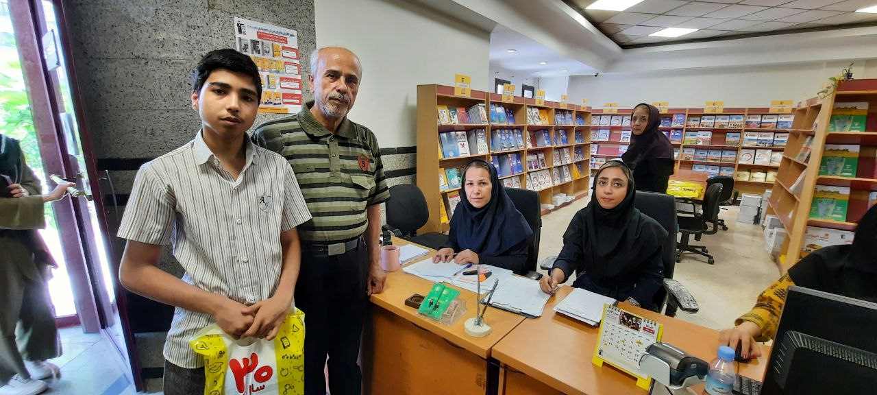 همراهی پدر دانشآموز بورسیه برای دریافت کتابهای اهدایی بنیاد قلمچی