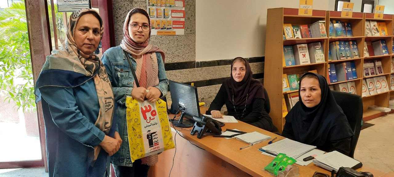 همراهی مادر دانشآموز بورسیه برای دریافت کتابهای اهدایی بنیاد قلمچی