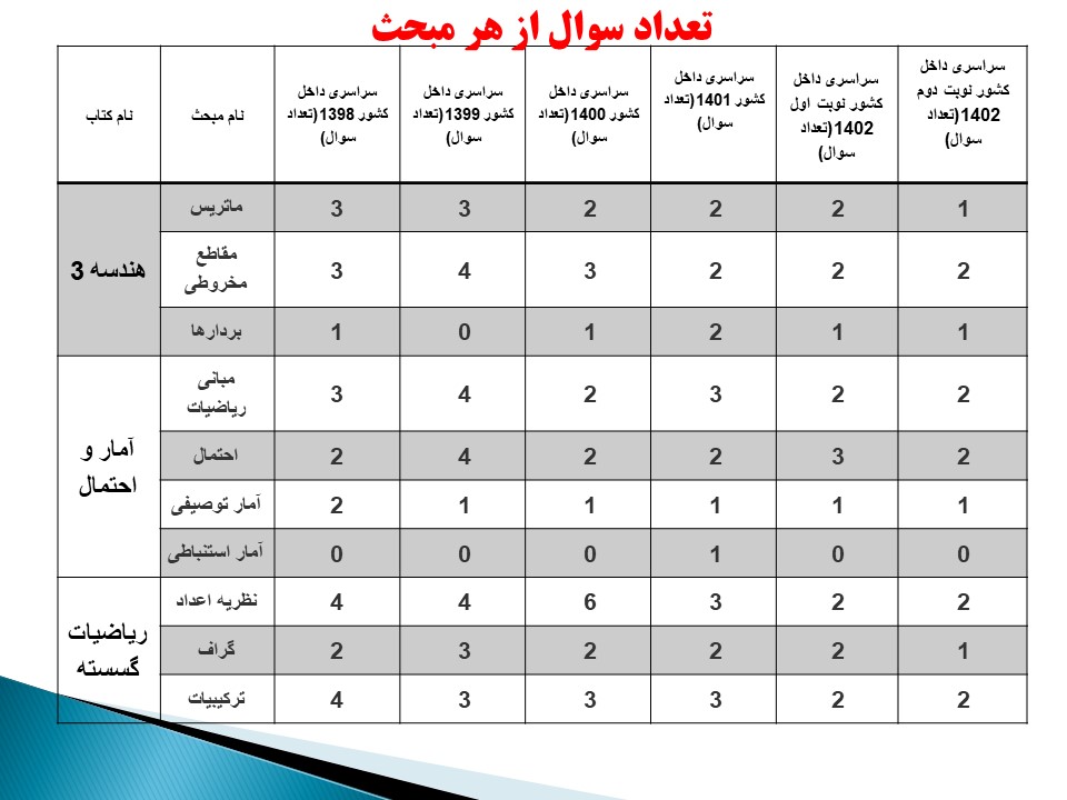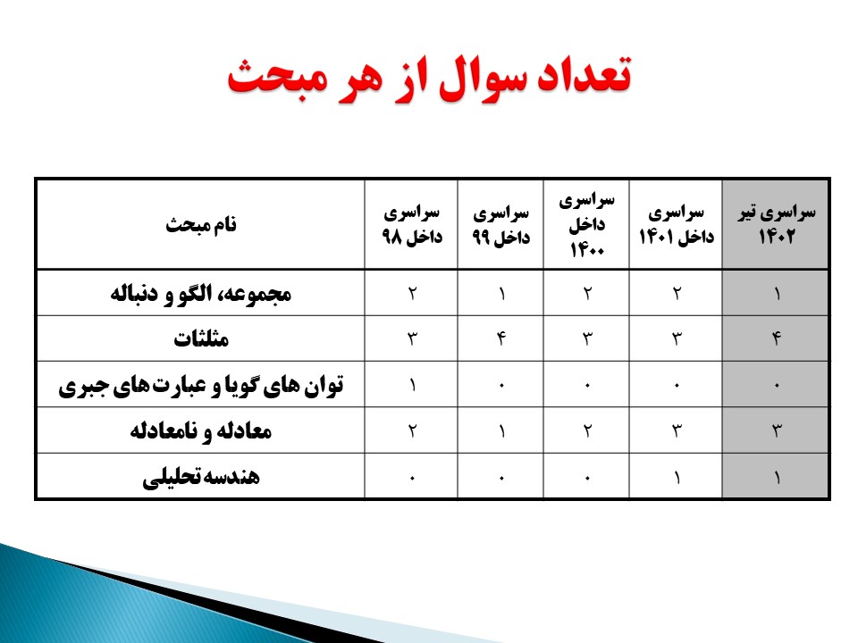 در مطلب زیر رویکرد های درس های اختصاصی کنکور تیر 1402 رشته ریاضی را که توسط دبیران مختلف نوشته شده است را مشاهده می کنید
