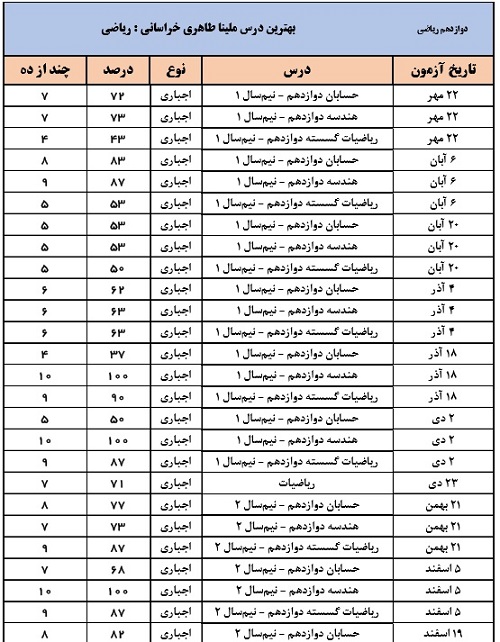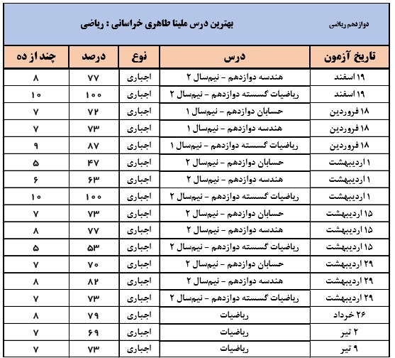 نام و نام خانوادگی : ملینا طاهری خراسانی
