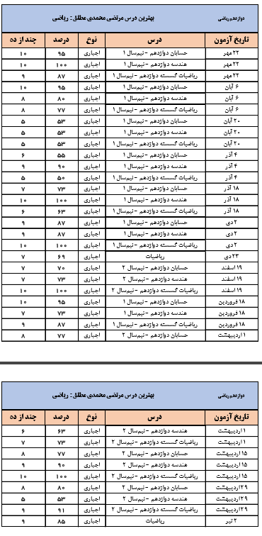 اگر در آزمون تیر ماه نسیت به آزمون دی ماه پیشرفت قابل ملاحظهای داشتید، توضیح دهید که در طی ماههای بین این دو آزمون چه برنامهای اجرا کردید؟