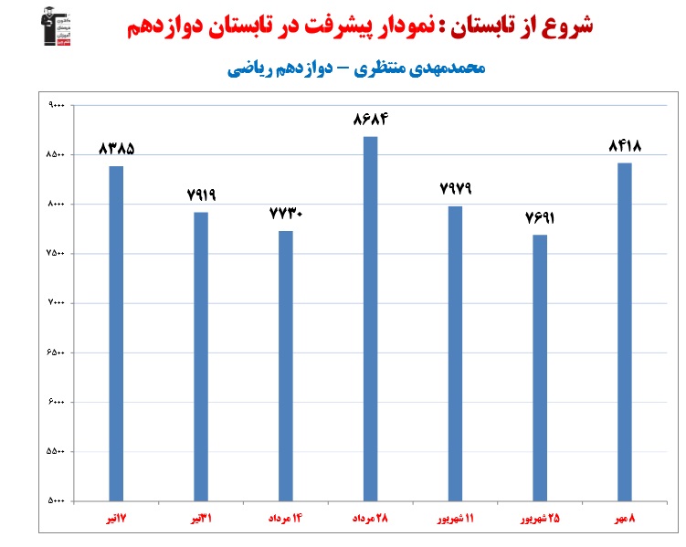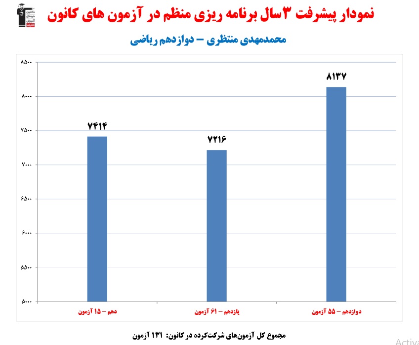 محمدمهدی منتظری،قهرمان پیوستگی،نمودار پیشرفت در 3سال،131آزمون