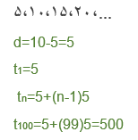 مثال:در دنبالهء حسابی زیر قدر نسبت و جملهء عمومی دنباله و جملهء 100 ام دنباله را بدست آورید.