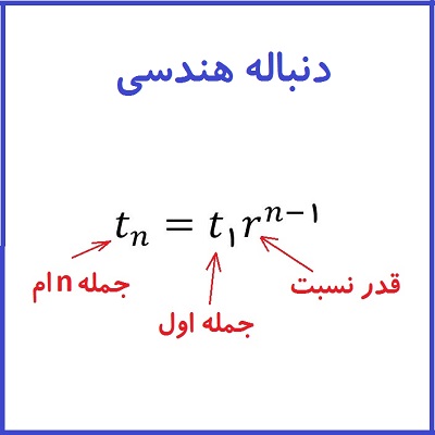 دنباله هندسی: دنباله ای است که در آن هر جمله (به جز جملهء اول) از ضرب جملهء قبل از خودش در عددی ثابت و غیرصفر به دست می آید. این عدد ثابت را قدرنسبت دنباله می نامیم. جمله اول هم باید غیرصفر باشد.