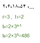 مثال:در دنبالهء هندسی زیر قدر نسبت و جملهء عمومی دنباله و جملهء 6ام دنباله را بدست آورید.
