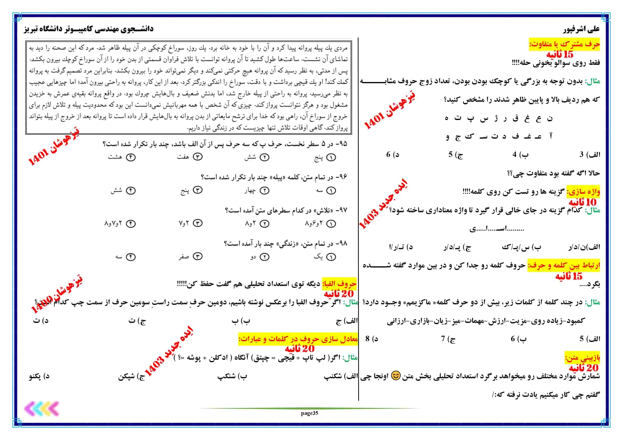 سوال متن بلند تیزهوشان 1402 را ببینید و حتماً تحلیل کنین...