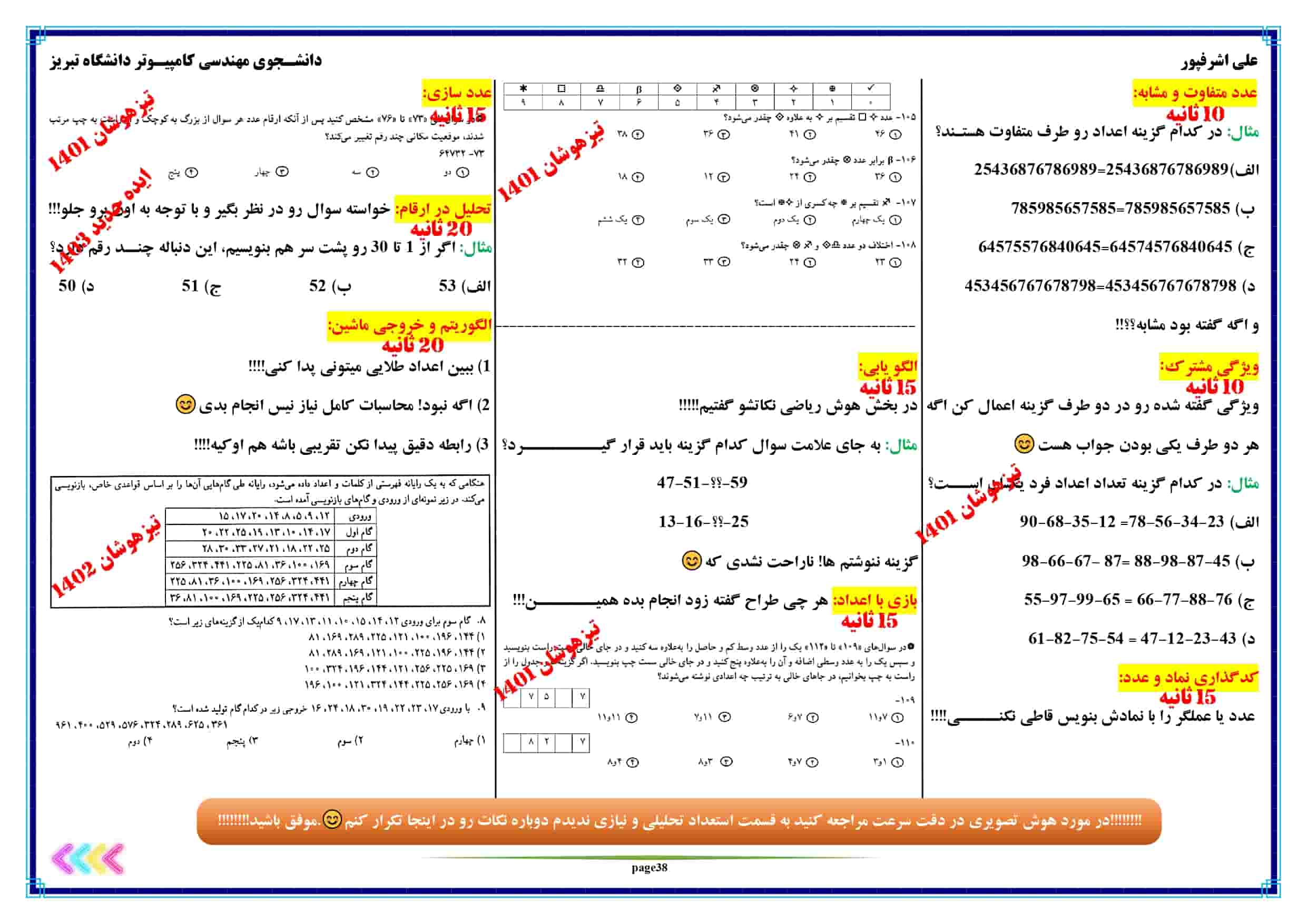 بخش رمز نگاری، بخشی که در سال های 1401،1402 و 1403 هر سه سال مورد سوال سمپاد بوده لطفا با دقت کامل سوالاشو حل کنید...