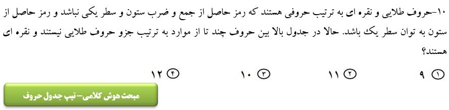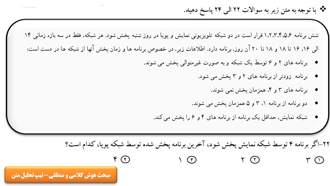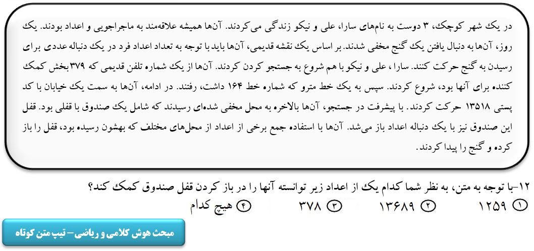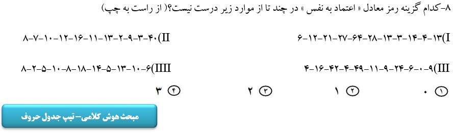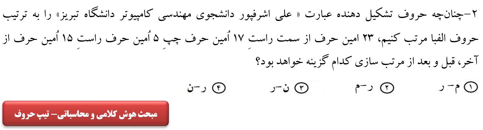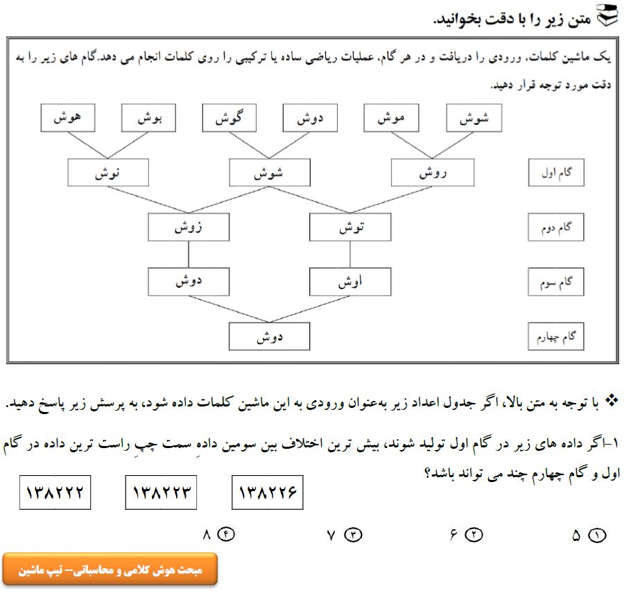از سه بخش هوش ریاضی - کلامی - تصویری تشکیل شده بریم بخش کلامی رو با تیپ تست های مختلف بررسی کنیم.