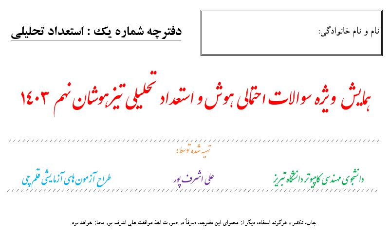 خوشحالم و خرسندم که با هم تا تیزهوشان 1404 برای استعداد تحلیلی با هم خواهیم بود.