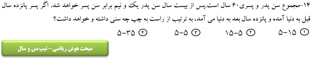 هوش مجموعه سوالاتی داره که ذهن شما را به چالش می کشد ما اینجا به شما کمک می کنیم که ذهنتان قادر به حل این سوالات باشد.