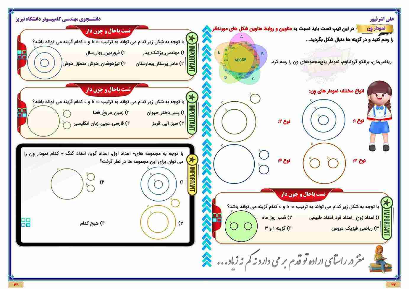 نمودار وِن از جمله تیپ سوالاتی هست که در سمپاد مطرح نشده و خیلی محتمل هست که بیاد...