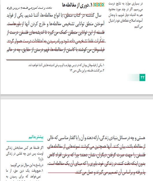 نکات مهم:فلسفه با استفاده از توانایی منطق در تشخیص مغالطات راه رسیدن به اعتقادات درست را هموار می گرداند.