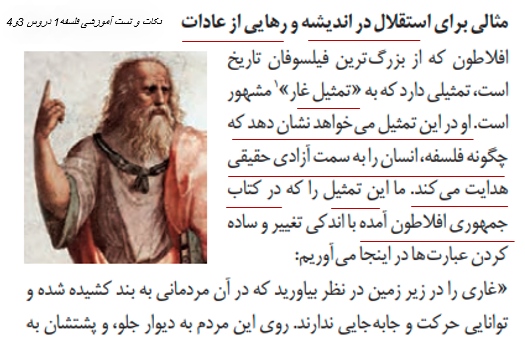 نکات مهم:تمثیل غار افلاطون در کتاب{جمهوری افلاطون آمده}.
