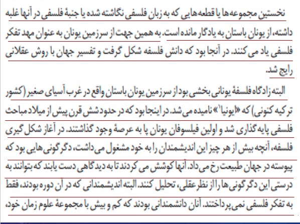 نکات مهم:سرزمین یونان را مهد تفکر فلسفی یاد می کنند.