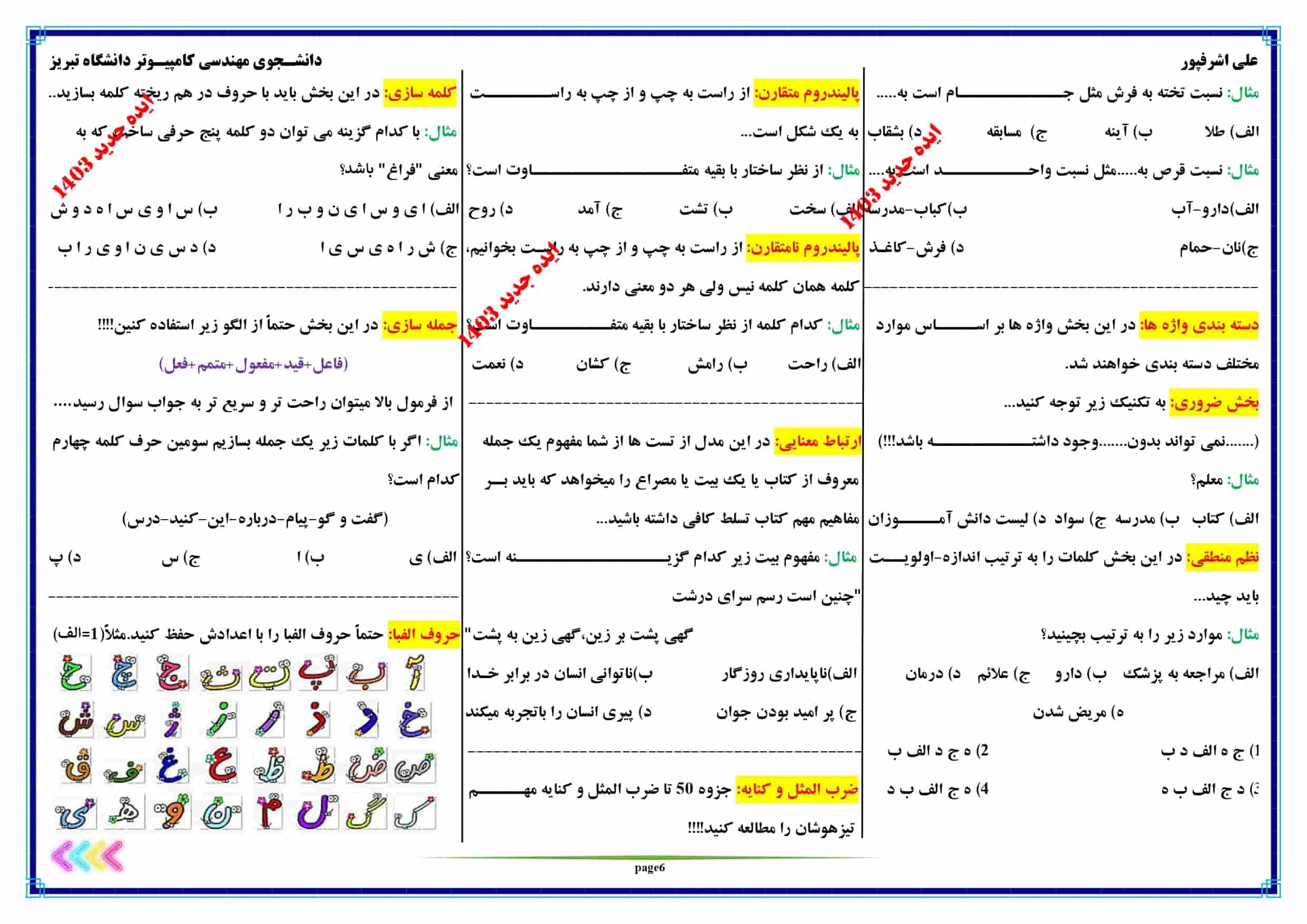 باید خدمتتون عرض کنم سوالات تستی جوابشون تو این جزوه نیومده و تو کلاس های آنلاین بحث و بررسی میکنم و حتی برای یادگیری بیشتر هم میتونین در این کلاسا شرکت کنین.