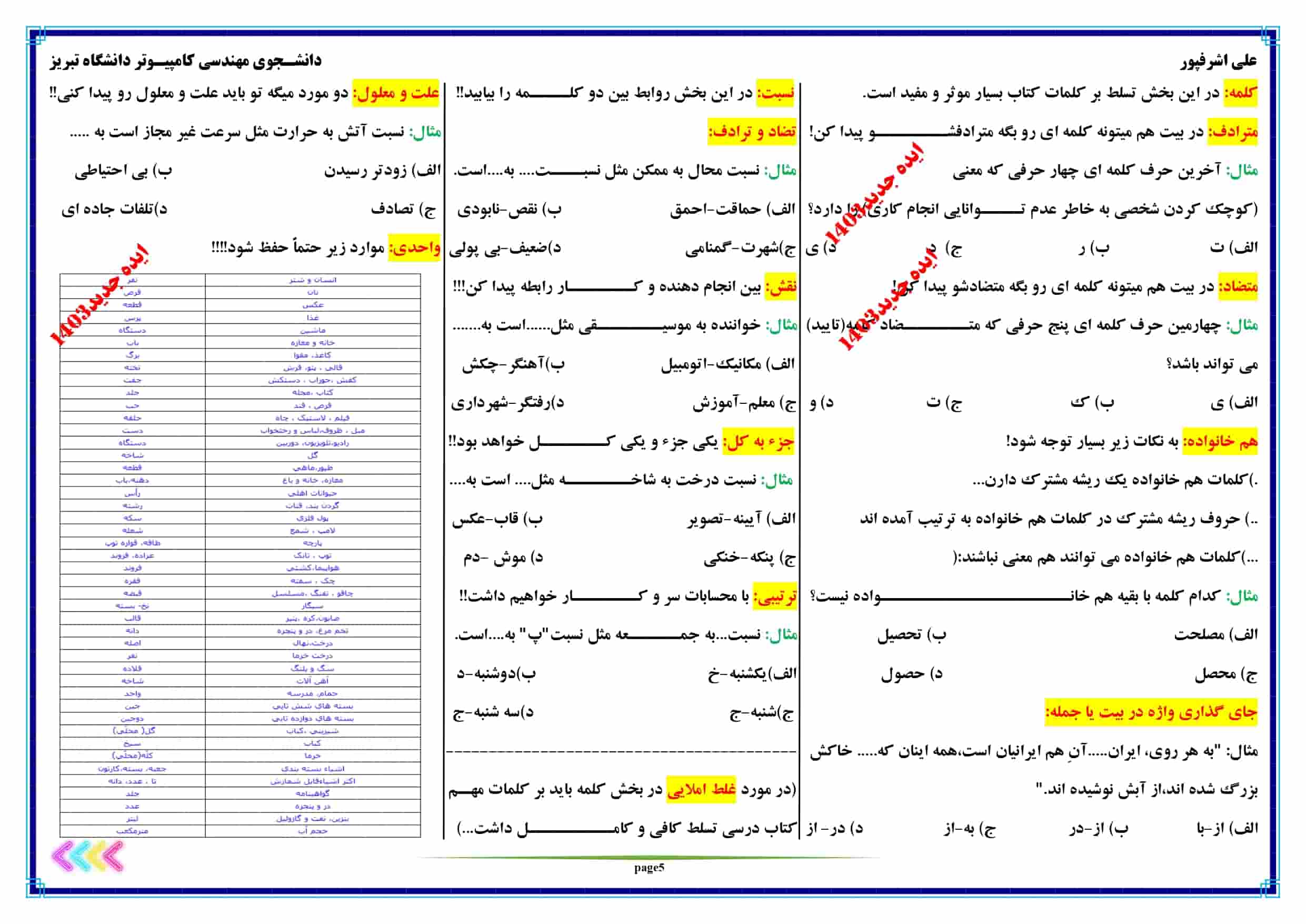 در بحث کلمه برای مترادف یا متضاد یا غلط املایی حتماً بر کلمات فارسی پنجم و ششم تسلط کافی داشته باش!!!!