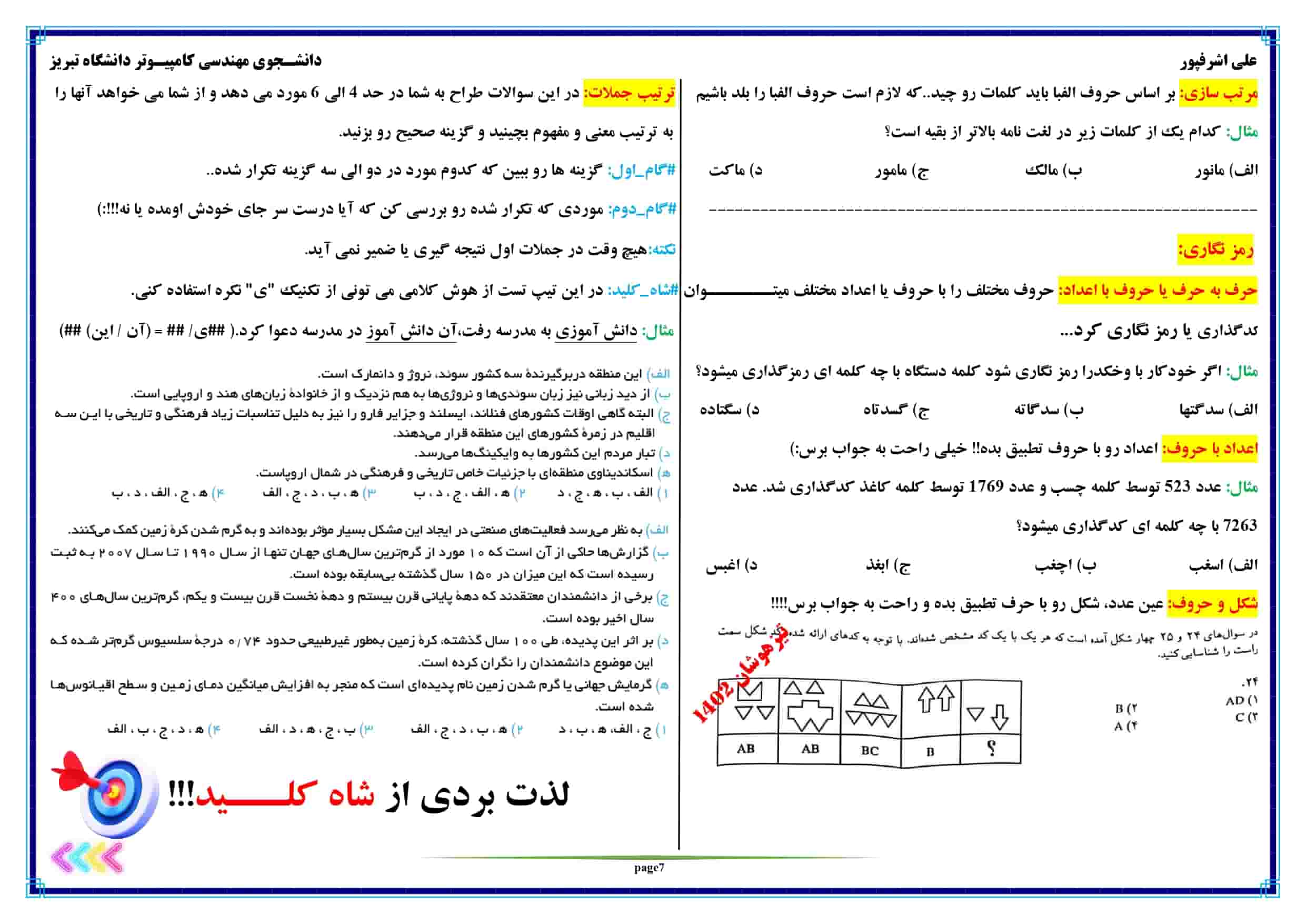 اولین سوال تیزهوشان 1402 که حل خواهید کرد در مورد رمزنگاری بخش شکل و حروف است.