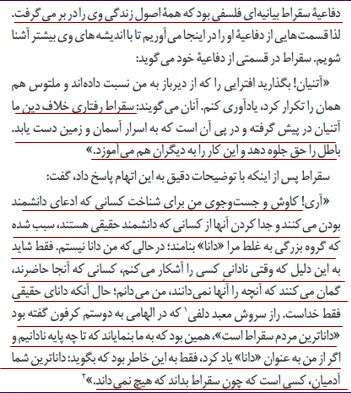 نکات : دفاعیه سقراط بیانیهای فلسفی بود که همه اصول زندگی وی را در برمی گرفت.